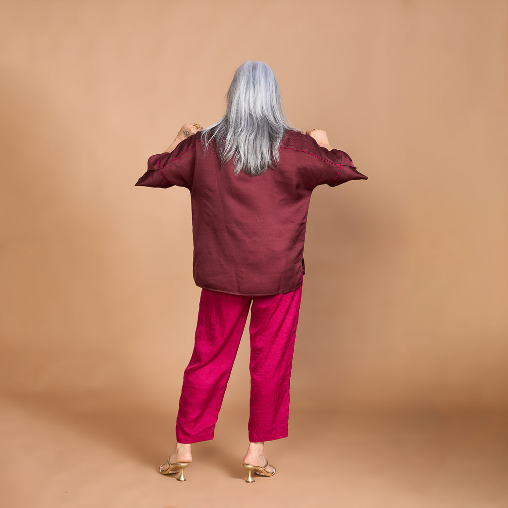 GIN Shirt Co-Ord Set - Burgundy Magenta