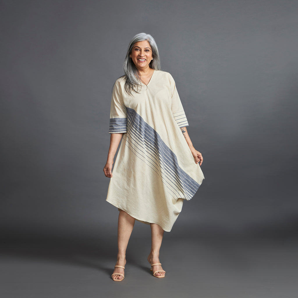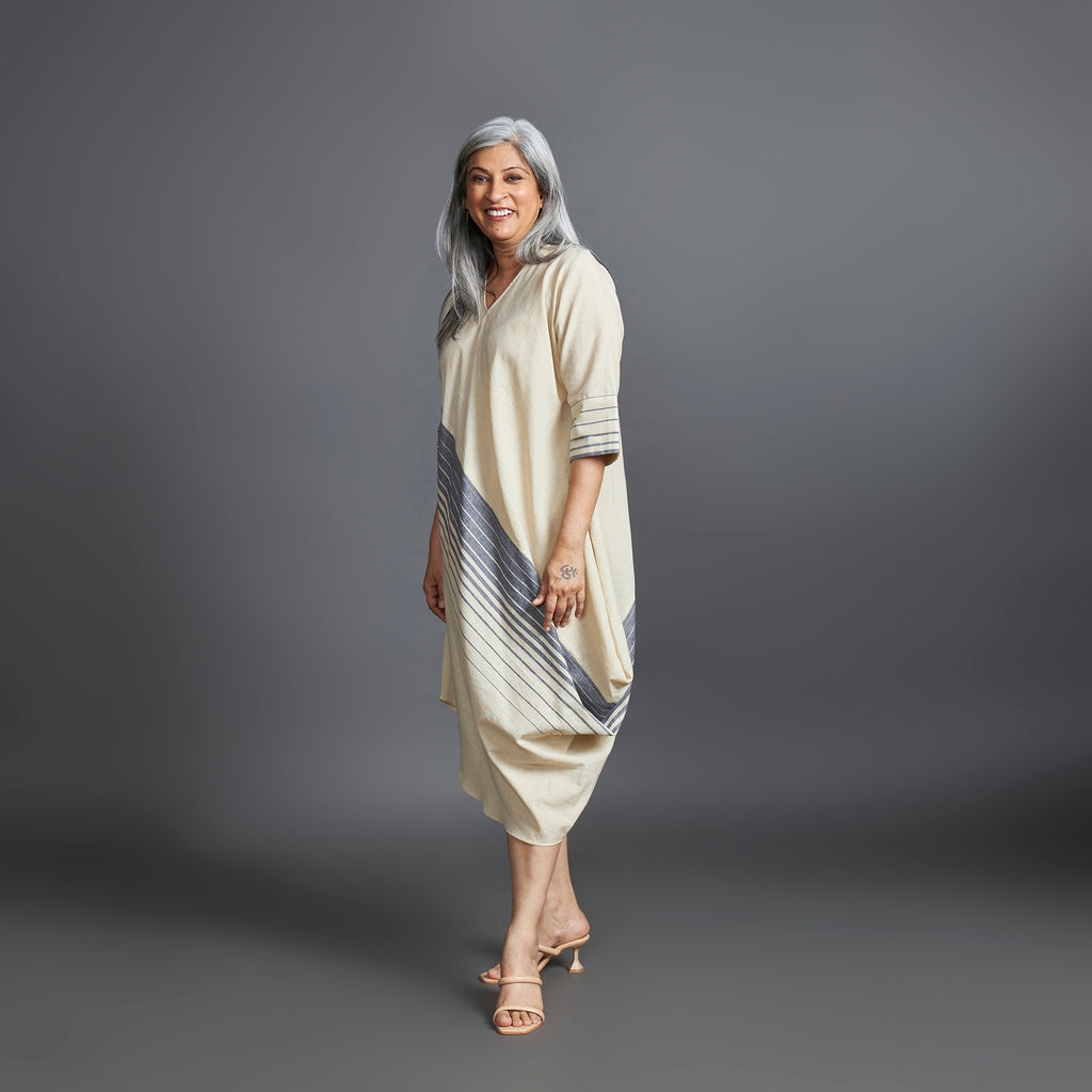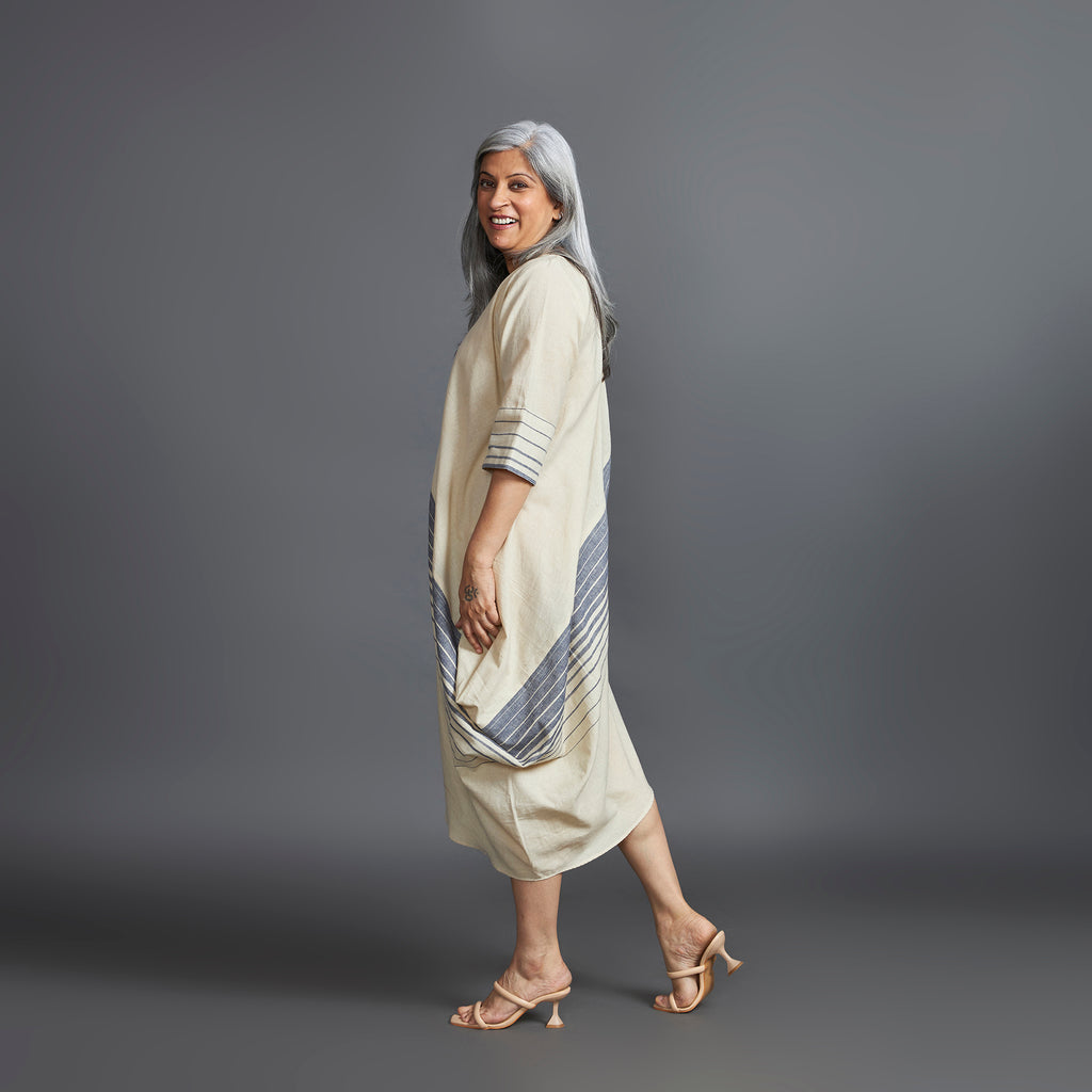 TASHI Cowl Dress - Ecru Grey Stripe (LAST PIECES)