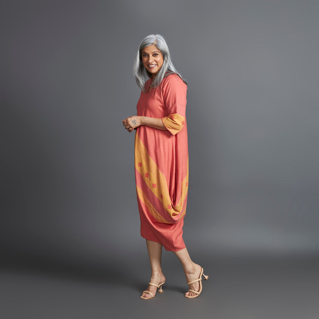 TASHI Cowl Dress - Peach stripe (LAST PIECES)