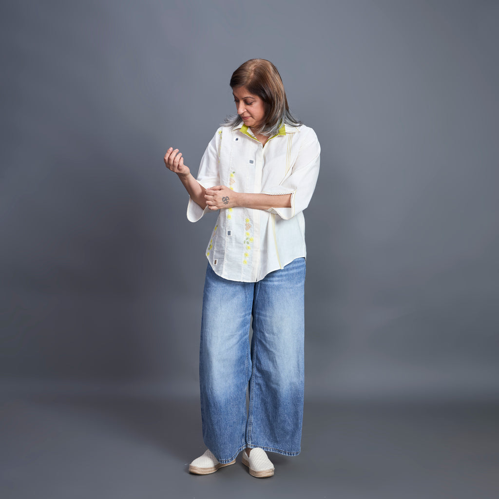 NIMMI Shirt - Ivory Lime Green (PROMO)
