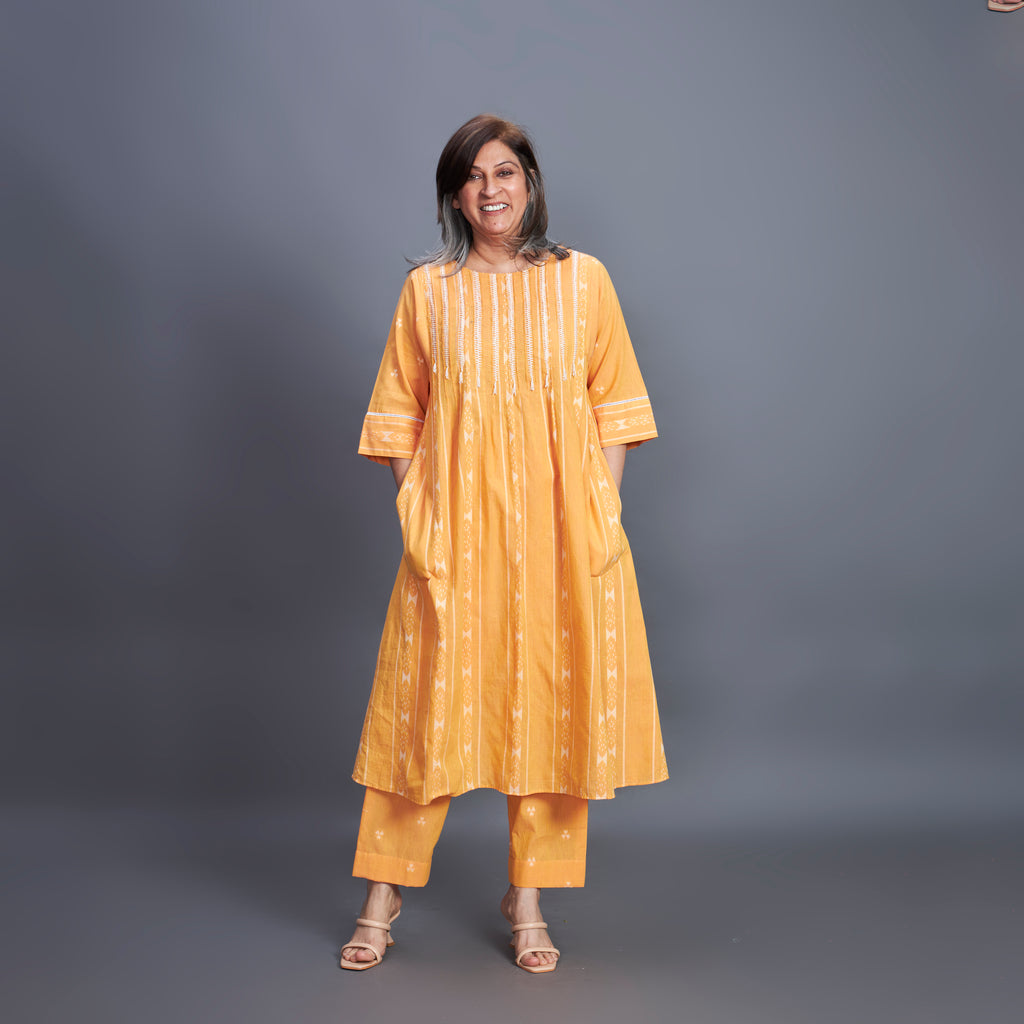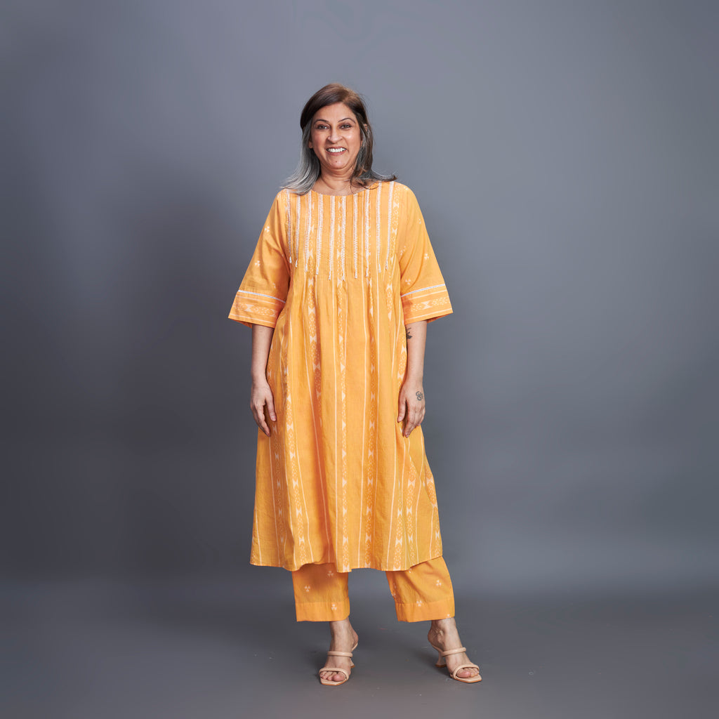 AAROHI Pin Tucked Tunic Set - Marigold