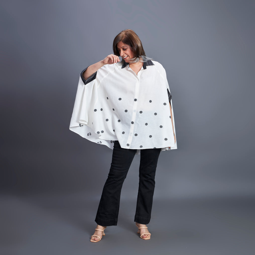 LELA Butterfly Shirt - Ivory Grey Dots (PROMO)