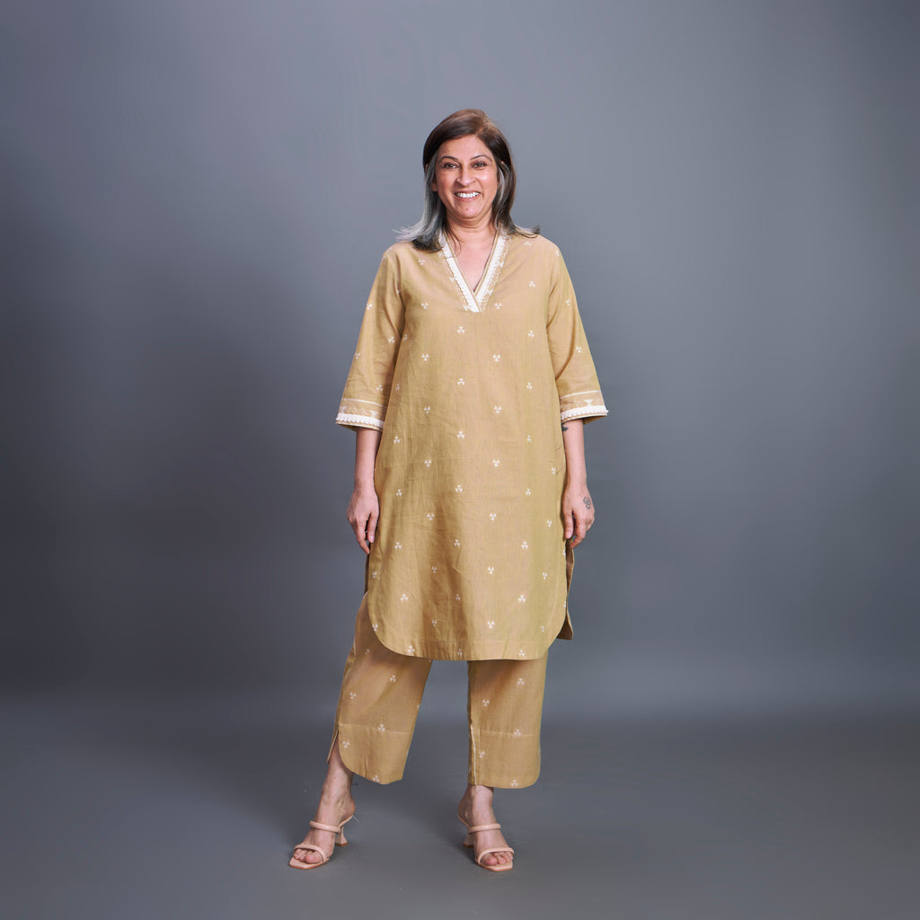 Have more questions about MIRA Shawl-Collar Tunic Set - Old Gold (PROMO)? Fill this form and send it to us...