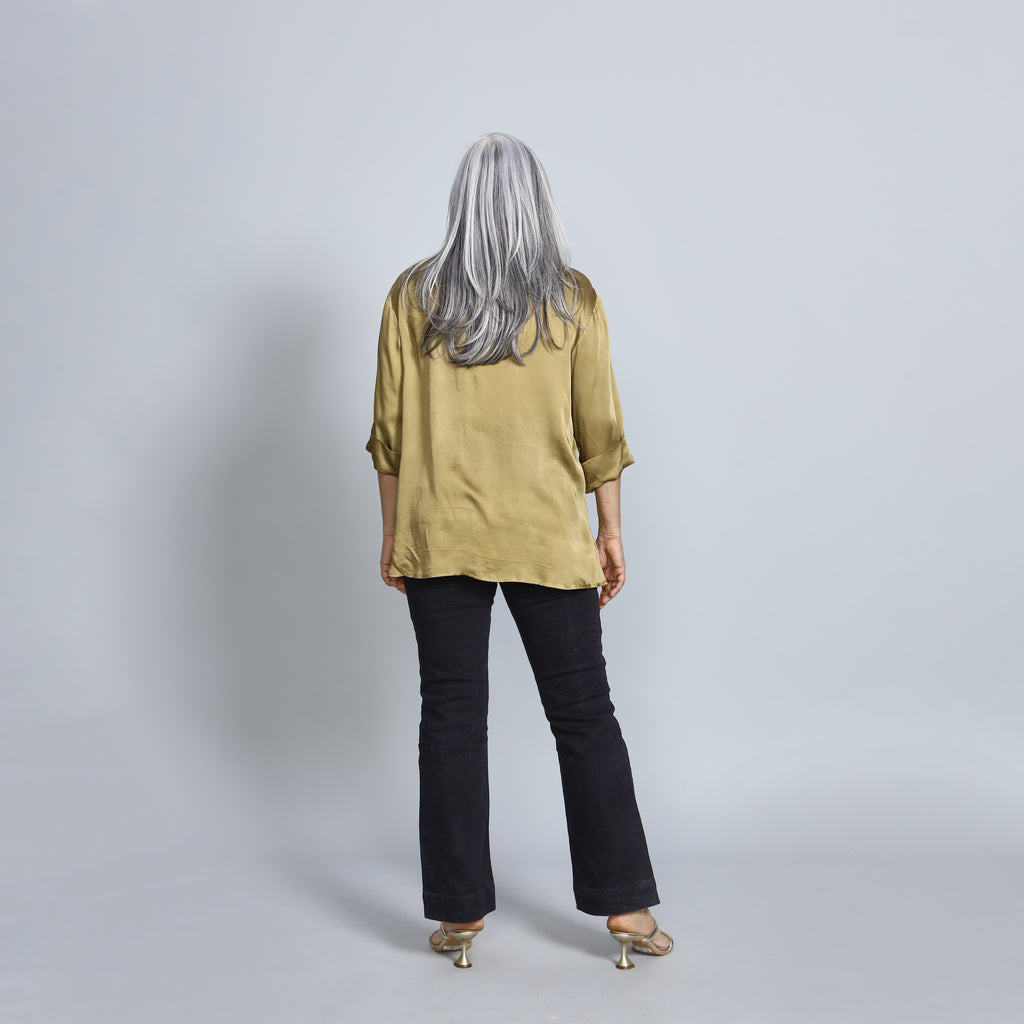 SHIREEN Shirt - Olive Satin with Sequin (PROMO)