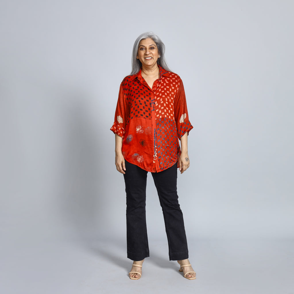 SHIREEN Shirt - RED Ajrakh Modal Satin (PROMO)