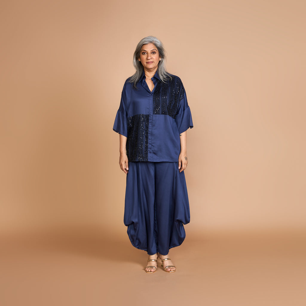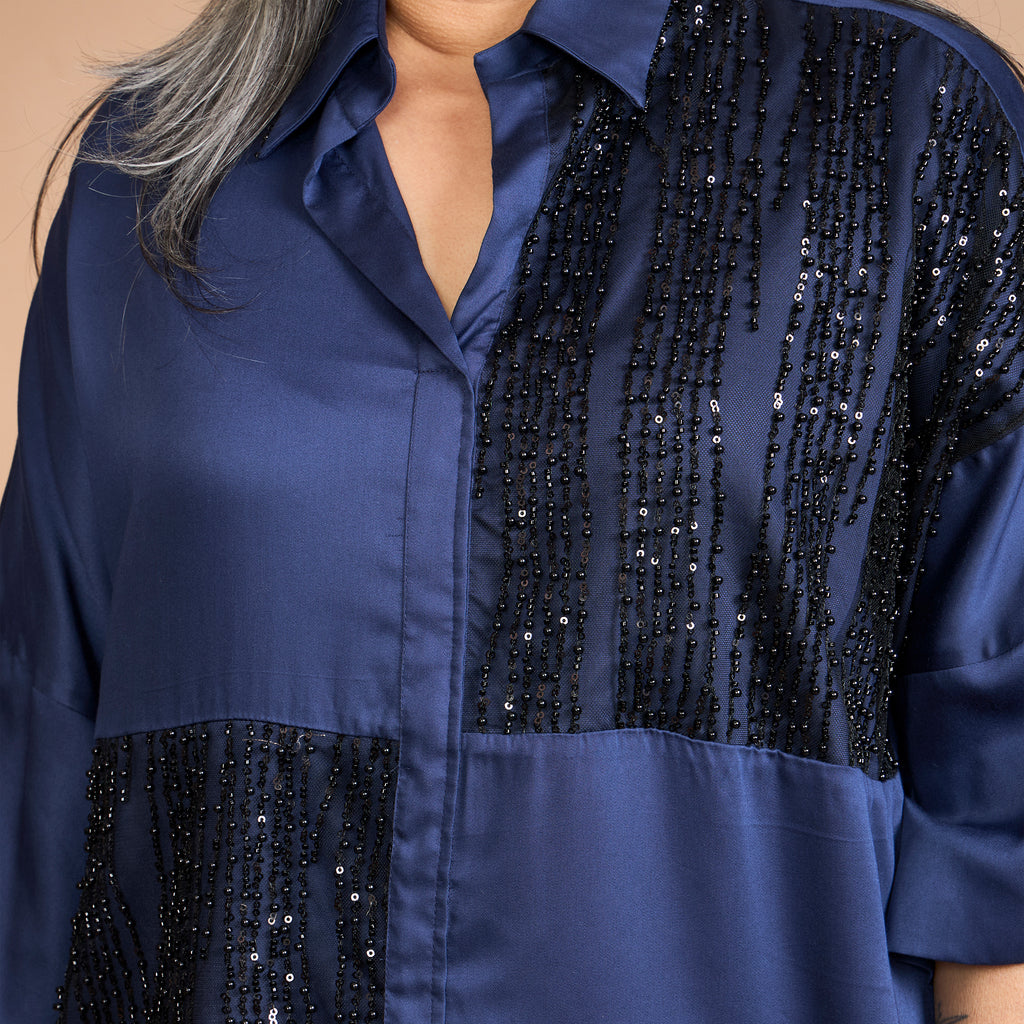 • Over size shirt with open cuff with beaded Embroidery