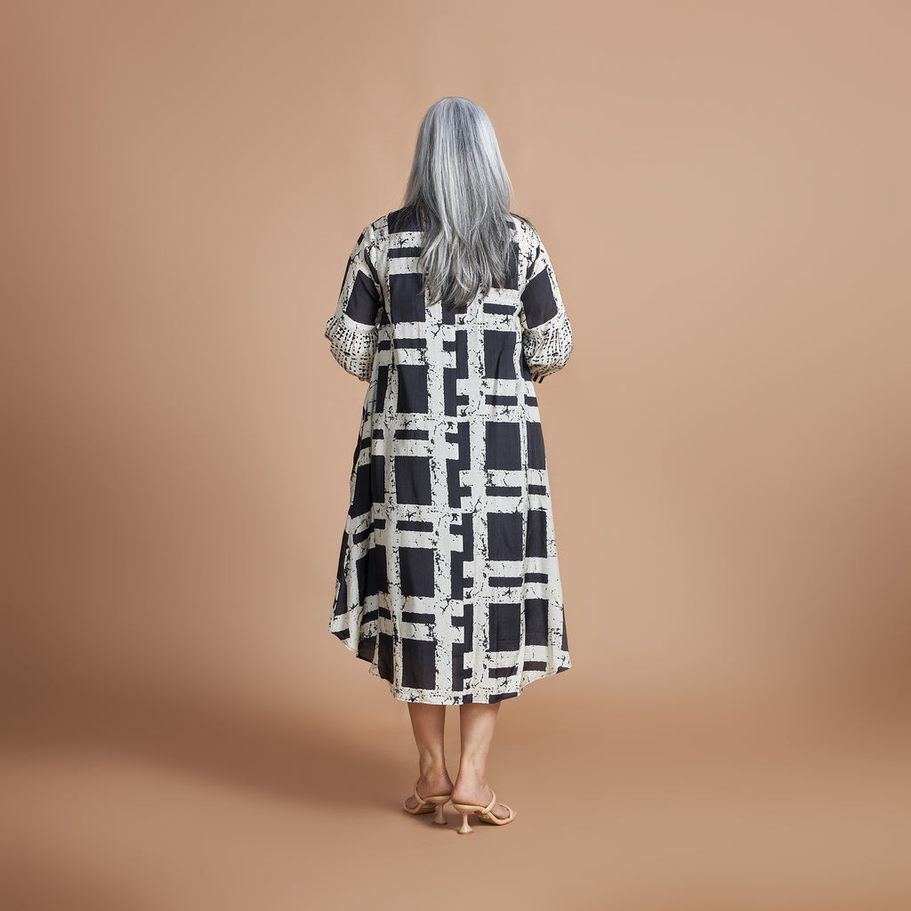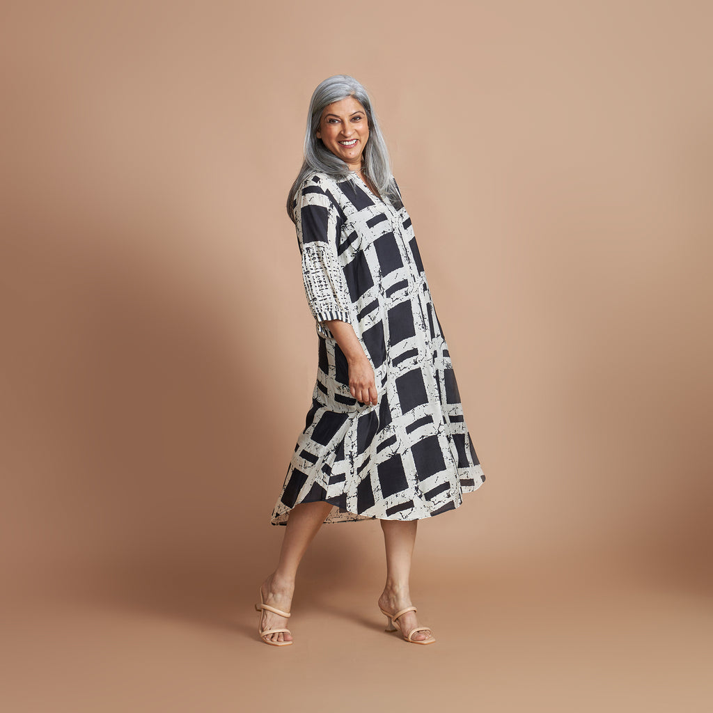 KAVYA A-line Dress - Black Ivory Print